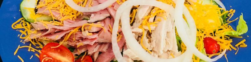 ICEBURG LETTUCE, HAM, TURKEY, CHEDDAR CHEESE, TOMATO, CUCUMBER, ONION & HARD BOILED EGG